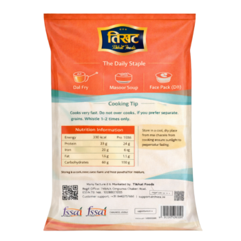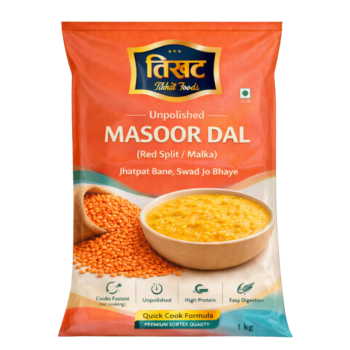 Tikhat Foods Masoor Dal-Lal is a premium, unpolished red split lentil packed with plant-based protein and dietary fiber. Sourced from the finest farms, these lentils are processed hygienically without any artificial polishing to retain their natural nutrients. Easy to cook and delicious in taste, it is the perfect choice for healthy, everyday family meals. (55 words)