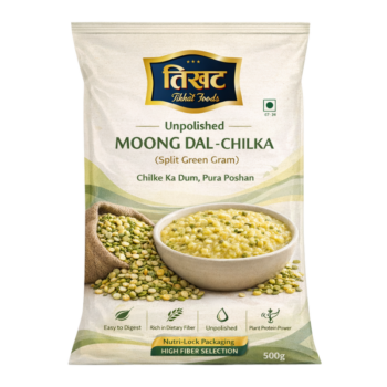 Tikhat Foods Moong Dal Chilka is an unpolished, premium-quality split green gram that retains the natural goodness of the grain. High in protein and rich in dietary fiber due to the intact skin, it is ideal for healthy, easy-to-digest meals. Hygienically processed and free from additives, this 1kg pack ensures superior taste and wholesome nutrition.