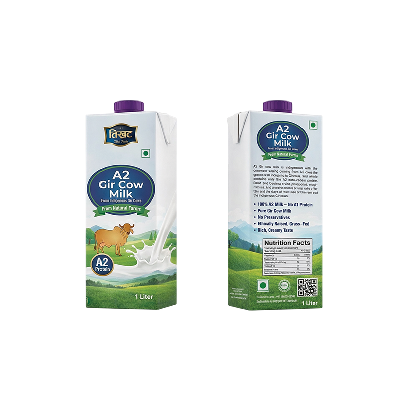 Tikhat Foods A2 Milk offers a naturally wholesome dairy experience, sourced from indigenous cow breeds that produce only the A2 beta-casein protein. This unique type of milk is considered gentler on digestion and rich in vital nutrients like protein, calcium, and essential vitamins.