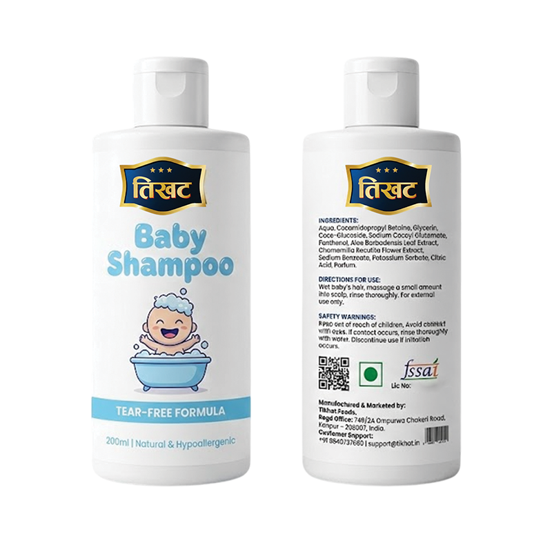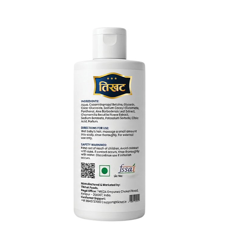 Tikhat Foods Baby Shampoo is specially formulated for delicate baby hair and sensitive scalps. Its ultra-mild, tear-free formula gently cleanses without irritation, rinses out easily, and helps maintain the scalp’s natural moisture balance. Enriched with nurturing botanical extracts and free from harsh chemicals, this shampoo soothes and softens fine baby hair while leaving it clean, smooth, and manageable. Ideal for daily use, this hypoallergenic baby shampoo is safe for newborns and up, providing gentle care you can trust.