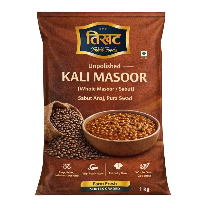 Discover the purity of Tikhat Foods Masoor Dal-Kali. Our unpolished whole black lentils are packed with natural protein and dietary fiber, retaining their original nutrient value. Sourced for superior quality and uniform grain size, this dal cooks easily into a delicious, creamy consistency. Enjoy a healthy, preservative-free meal with the authentic taste of home