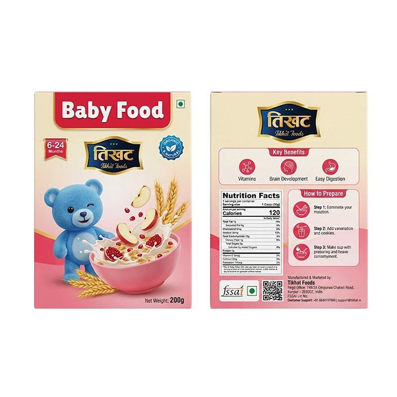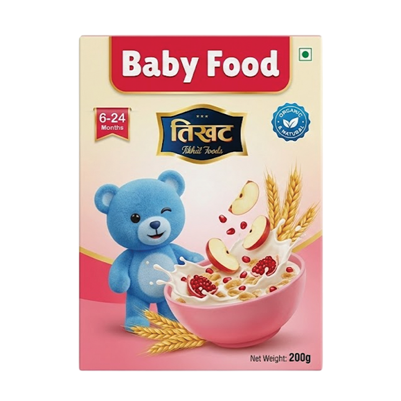 Tikhat Foods Baby Food is a carefully formulated, nutritious meal designed for infants and toddlers. Made with wholesome grains, fruits, and essential vitamins, this easy-to-digest baby food supports healthy growth and development. Free from artificial colours and preservatives, it is gentle on tiny tummies and helps introduce natural flavours early in life. The smooth, soft texture makes spoon-feeding easy and ideal for weaning and everyday nutrition. Perfect as a wholesome breakfast or snack, it provides vital nutrients and energy to support your baby’s active first years.