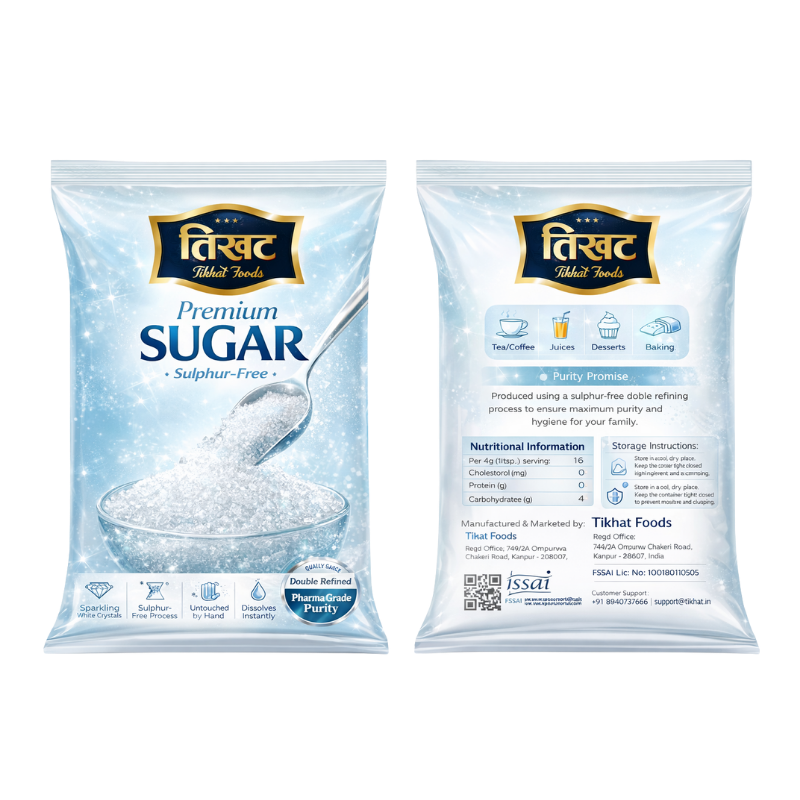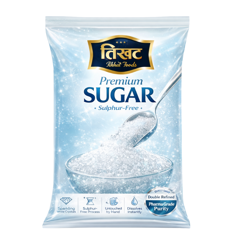 Sourced from high-quality sugarcane, Tikhat Foods Sugar is processed in a state-of-the-art facility where it remains untouched by hand to maintain the highest hygiene standards. The fine crystals dissolve rapidly in both hot and cold liquids, making it ideal for baking, cooking, or simply sweetening your favorite drinks. Packaged in a moisture-proof pouch to prevent clumping, our sugar ensures that you get farm-fresh sweetness in every spoonful.