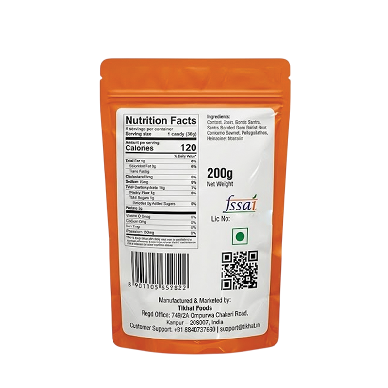 Delight your taste buds with this classic tangy orange flavoured candy that brings back the nostalgic fun of childhood treats. Made with high-quality sugar and natural-identical orange flavour, these sweet and tangy toffees offer a burst of citrus goodness in every bite. Perfect as an anytime snack, party treat, or travel-friendly sweet, Kampat candies are vegetarian, fun-sized, and easy to share. Enjoy a satisfying sugar rush with refreshing fruity notes that make every moment brighter.