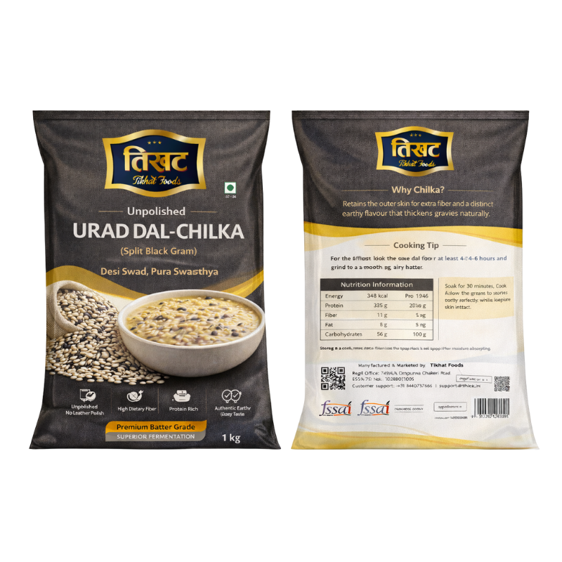 Sourced from the best farms, every grain is processed through a multi-stage cleaning and quality check to ensure a consistent size and texture. Urad Chilka is renowned for its high fiber content and its ability to create a thick, delicious gravy. It is the perfect choice for preparing traditional North Indian dals or a wholesome khichdi. With Tikhat Foods, you get a product that is as close to nature as possible—pure, nutritious, and free from additives.