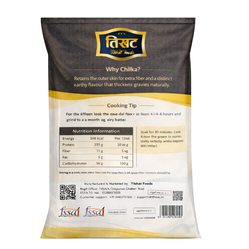 Bring home the authentic taste of tradition with Tikhat Foods Urad Dal-Chilka. Our split black gram with skin is kept 100% unpolished, ensuring that the natural dietary fiber and protein are preserved. Unlike ordinary dals, we do not use any artificial polishing agents like water, oil, or leather, which allows the lentils to retain their original earthy aroma and nutritional integrity.